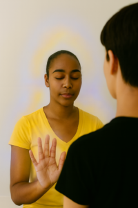 Deze oefening helpt je om gevoelig te worden voor de subtiele energieën die om een persoon heen hangen.